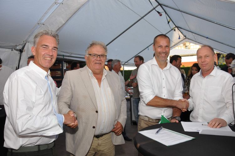 Op de foto v.l.n.r.: Michel Witmer (bestuurslid TC Hodenpijl), Piet Oosthoek (Oosthoek-Groep), Michel Baggerman (voorzitter TC Hodenpijl) en Jeroen Andeweg (Oostendorp Nederland)