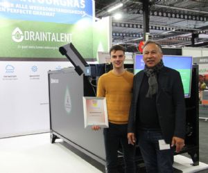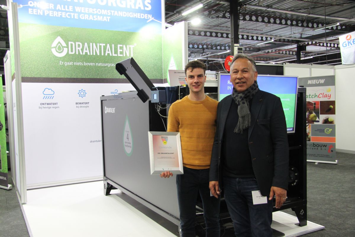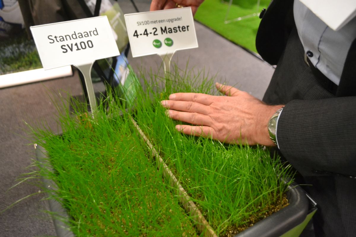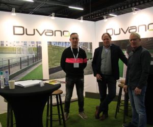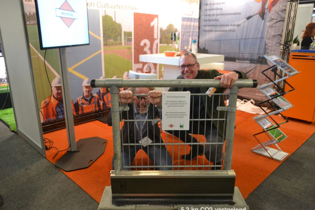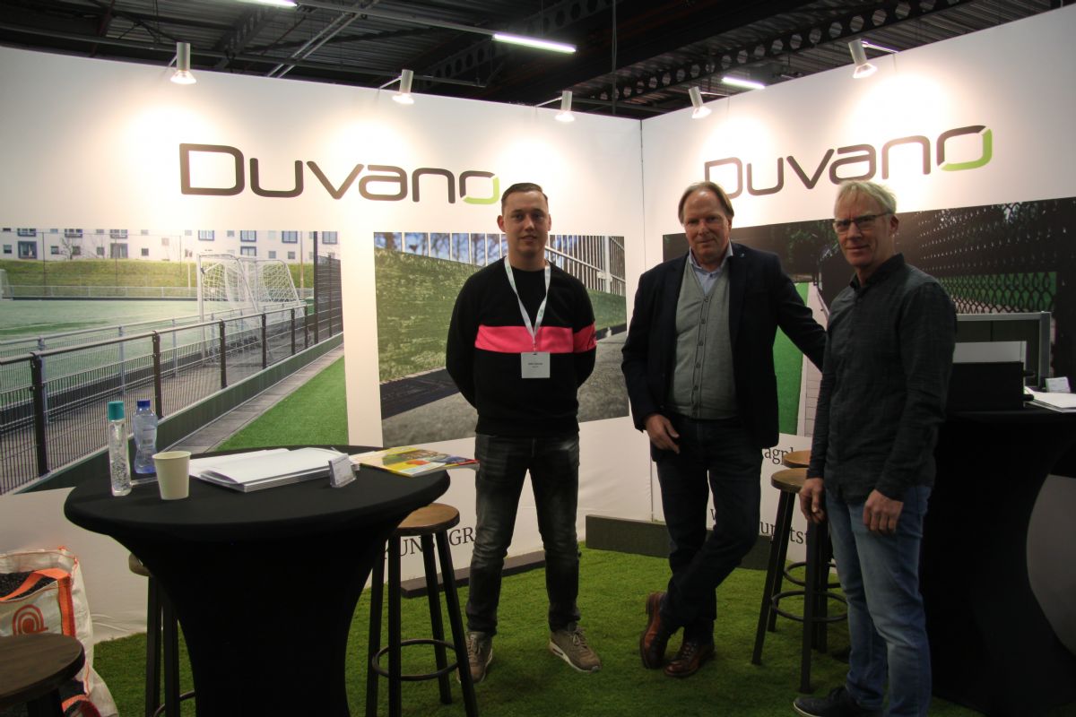 Team van Duvano liet haar gerecyclede slagplanken van kunstgras zien. Een gewild product om de infill binnen het veld te houden.