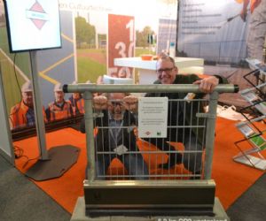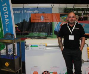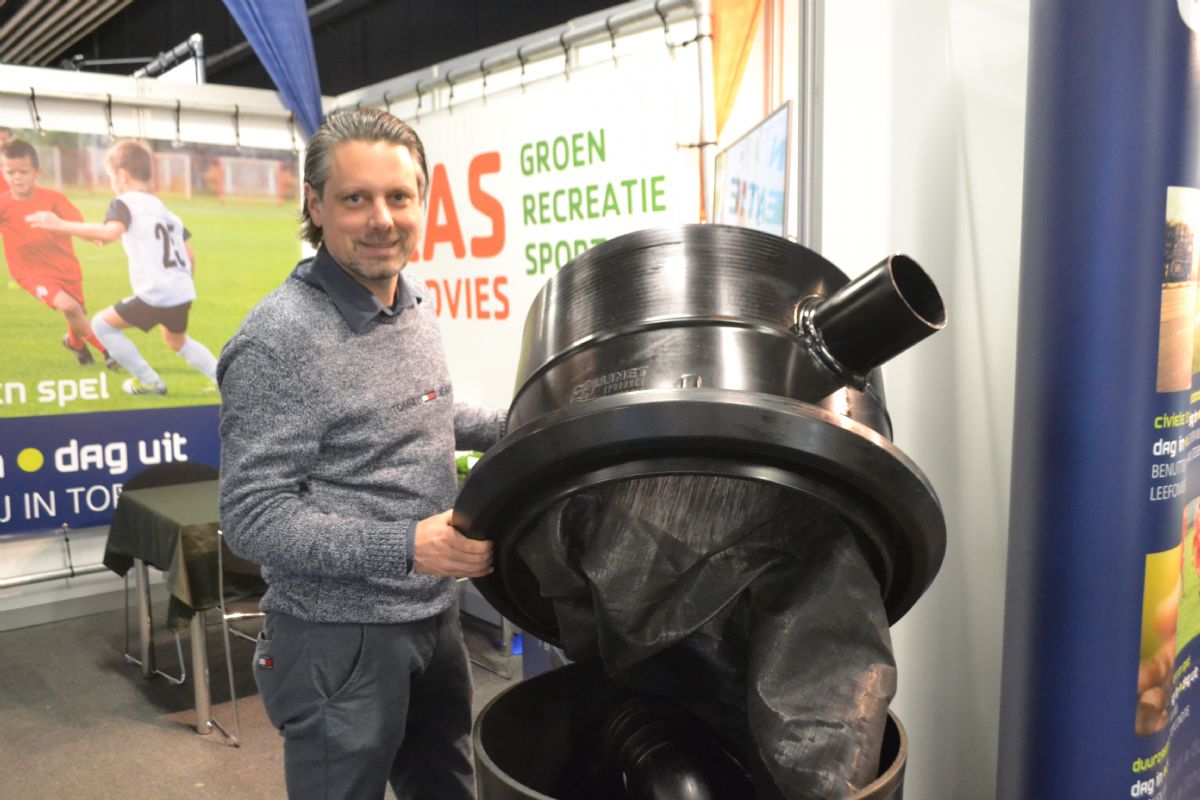 Hes Derksen op de stand van Joosten Kunststoffen.