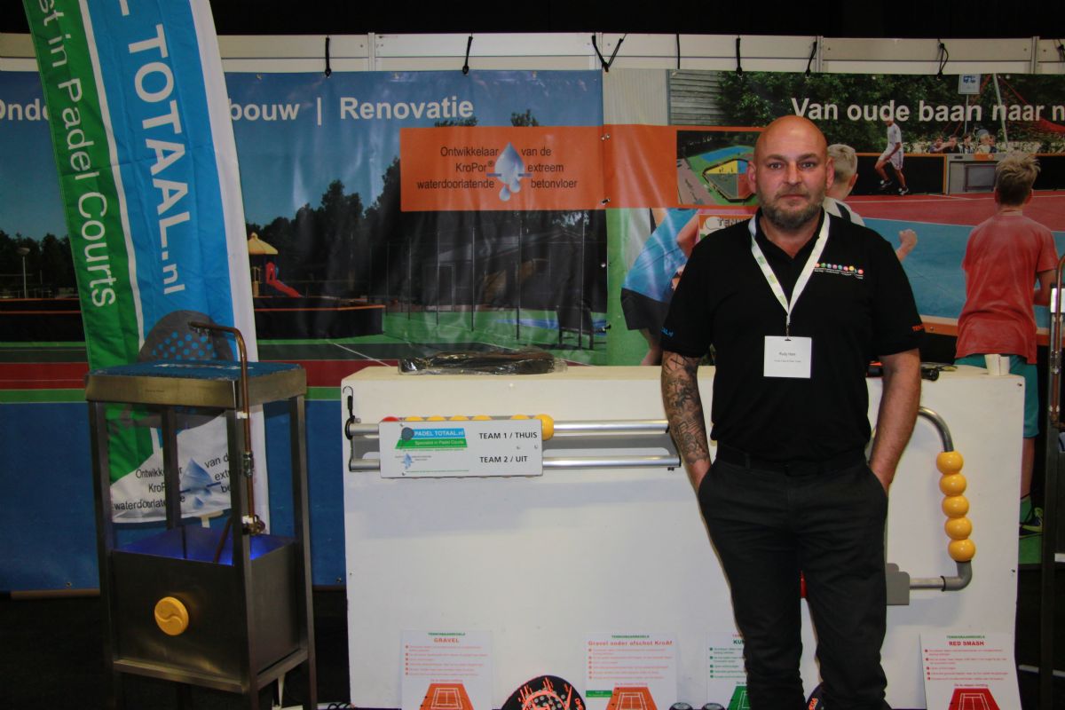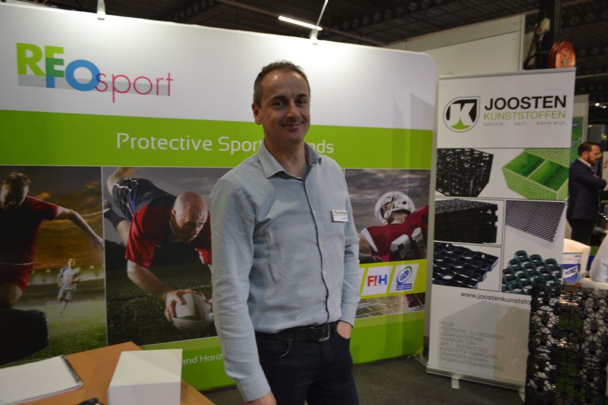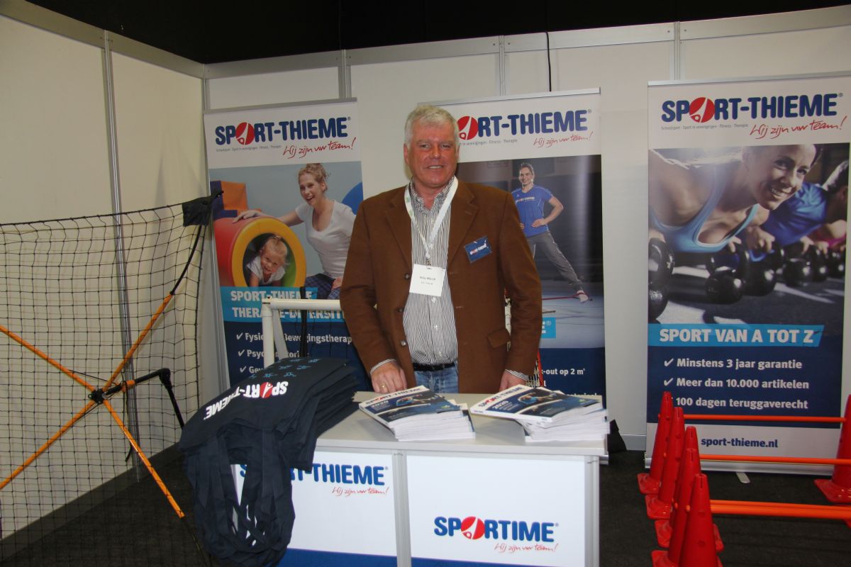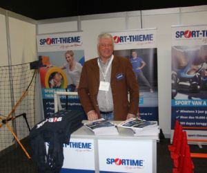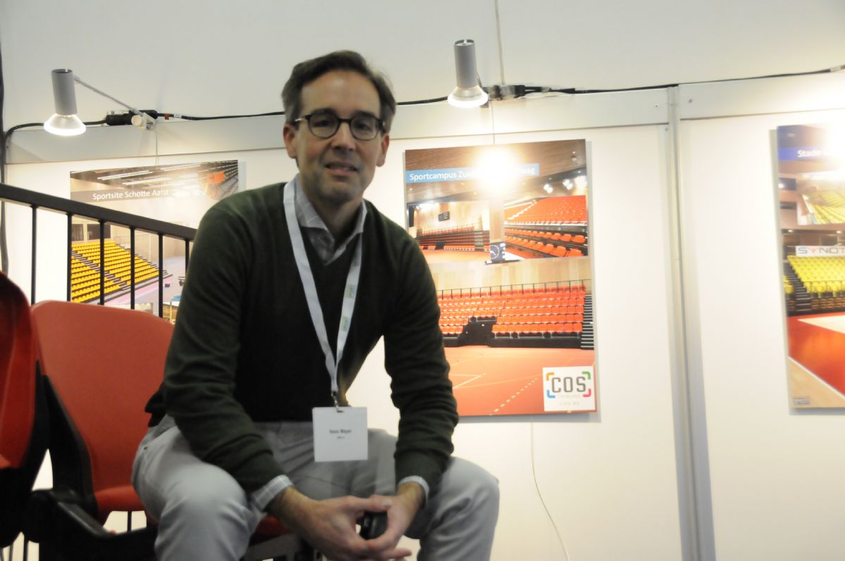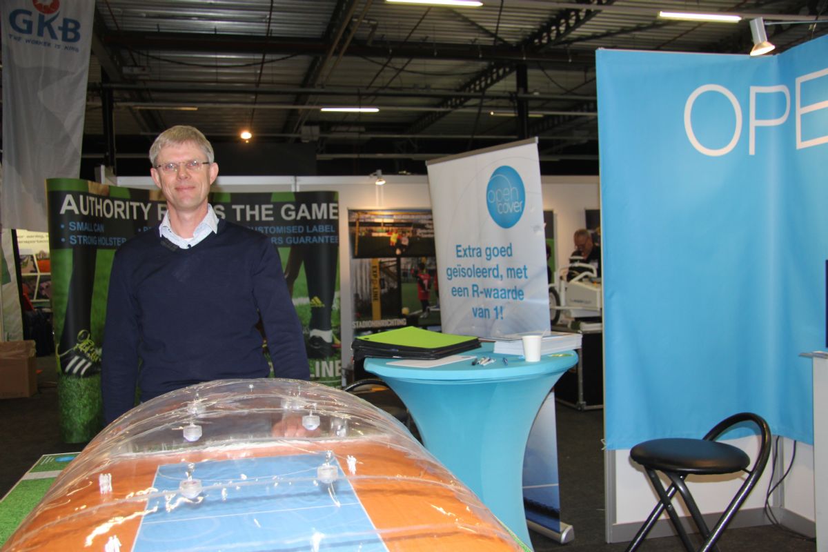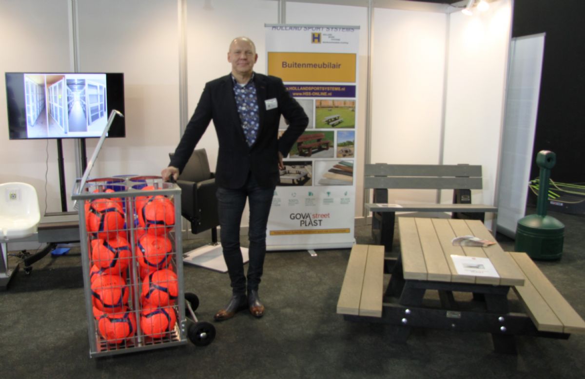 Ricky Mollin liet op de stand van Sport-Thieme eenvoudig opbergbare sportmaterialen zien. Want ruimte is altijd een probleem bij gemeentes en sportverenigingen.
