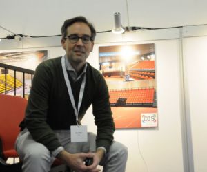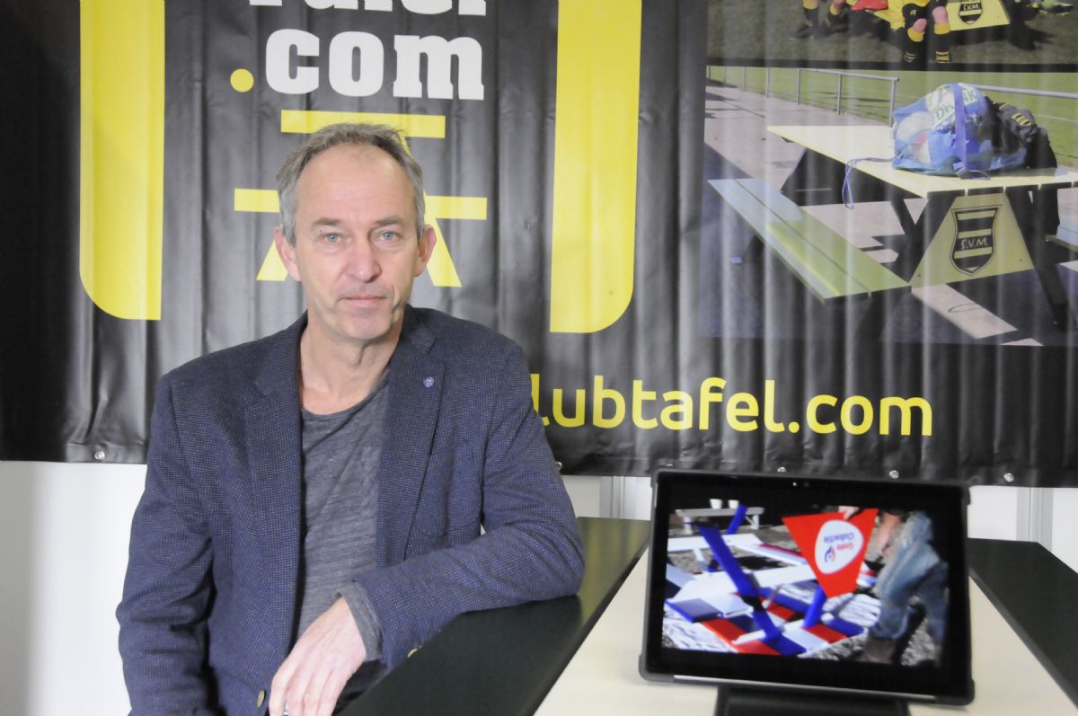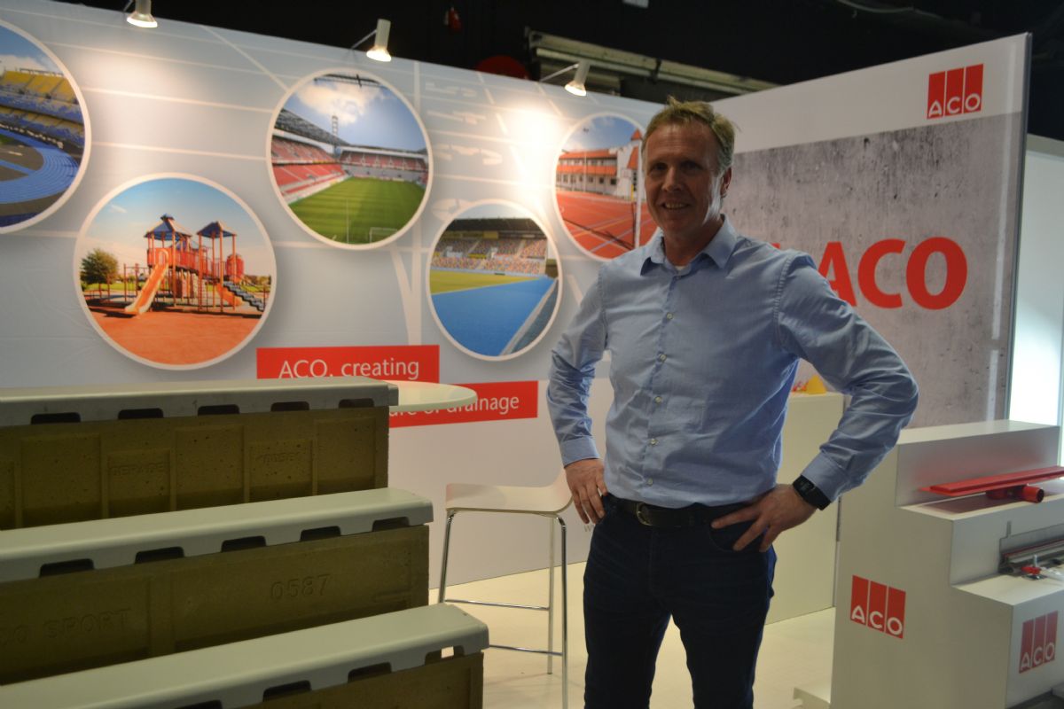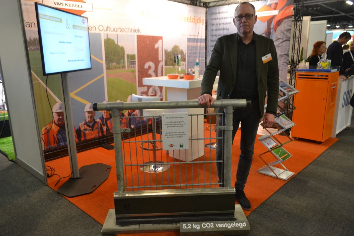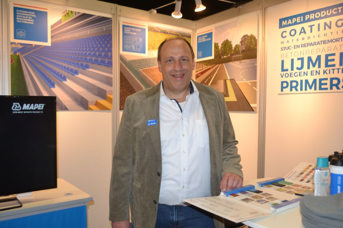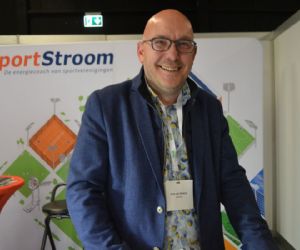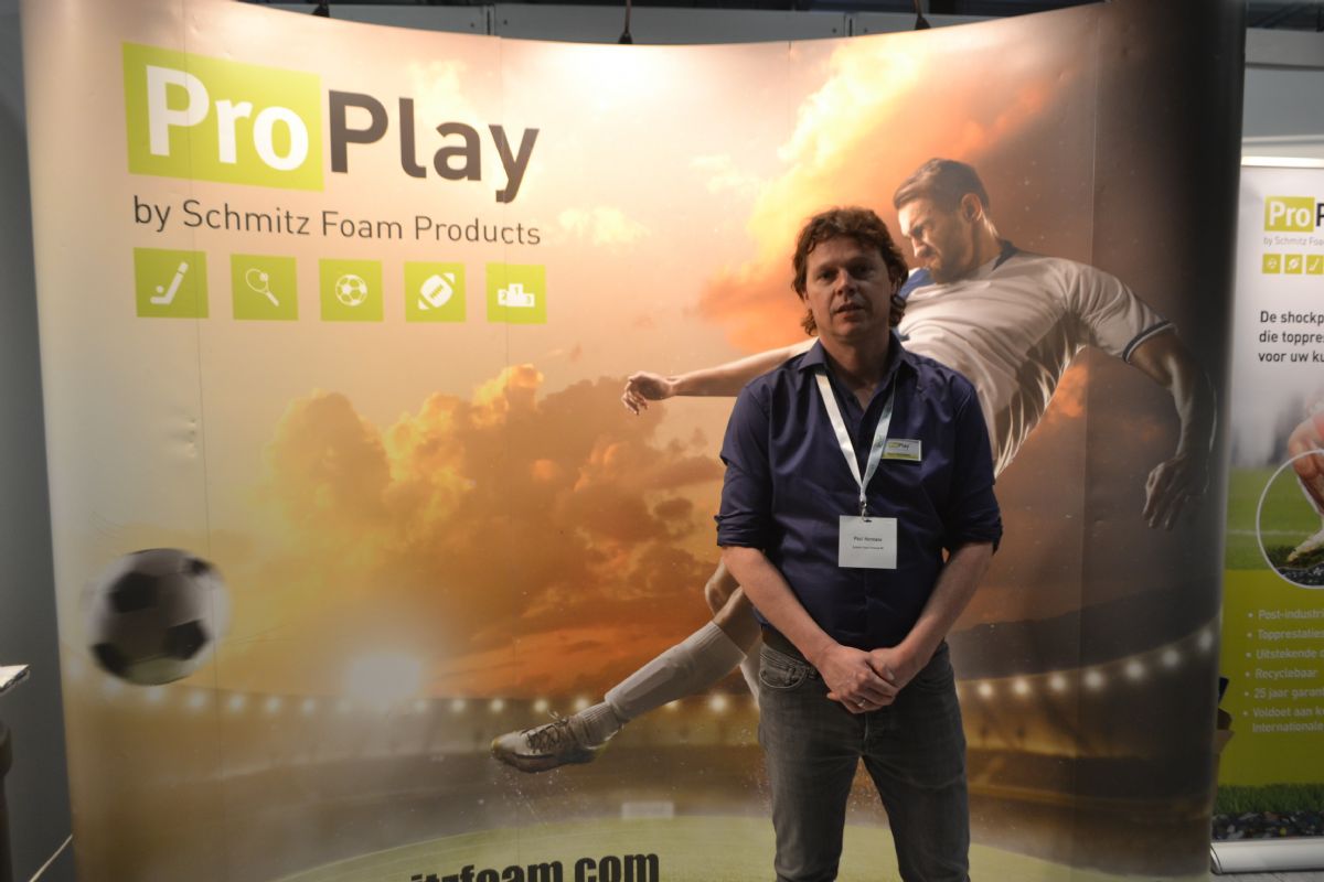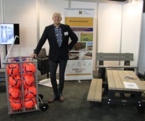 Ricky Mollin liet op de stand van Sport-Thieme eenvoudig opbergbare sportmaterialen zien. Want ruimte is altijd een probleem bij gemeentes en sportverenigingen.