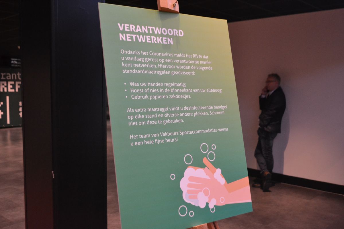 Handen schudden of toch niet? Ook op de beurs was aandacht voor het coronavirus.
