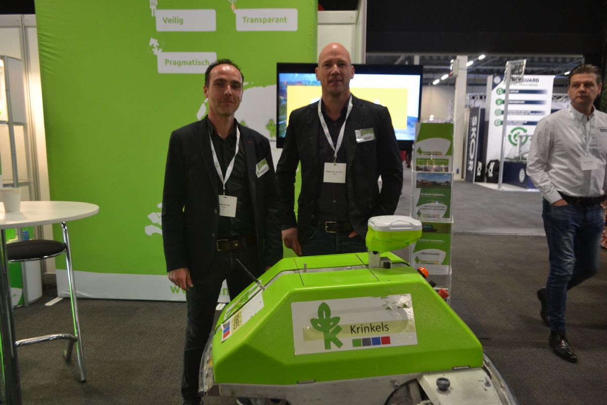 Krinkels was aanwezig met robotbelijner Intelligent One. Op de foto Geert de Haan en William van der Pluijm.