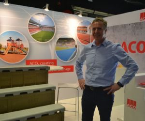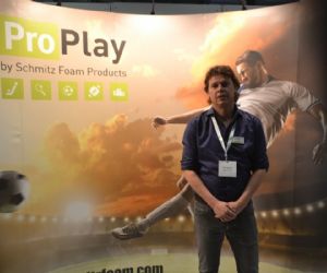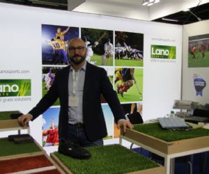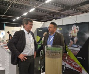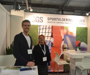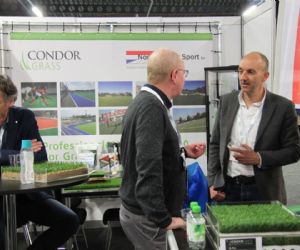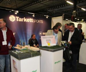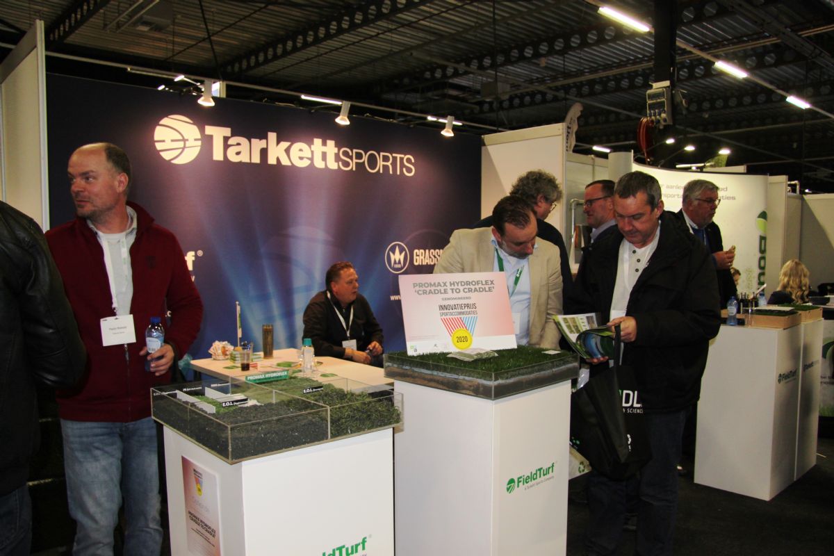 Op de stand van Tarkettsports stond de innovatieve infill Promax Hydroflex centraal