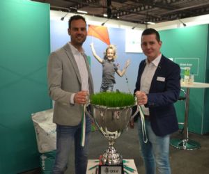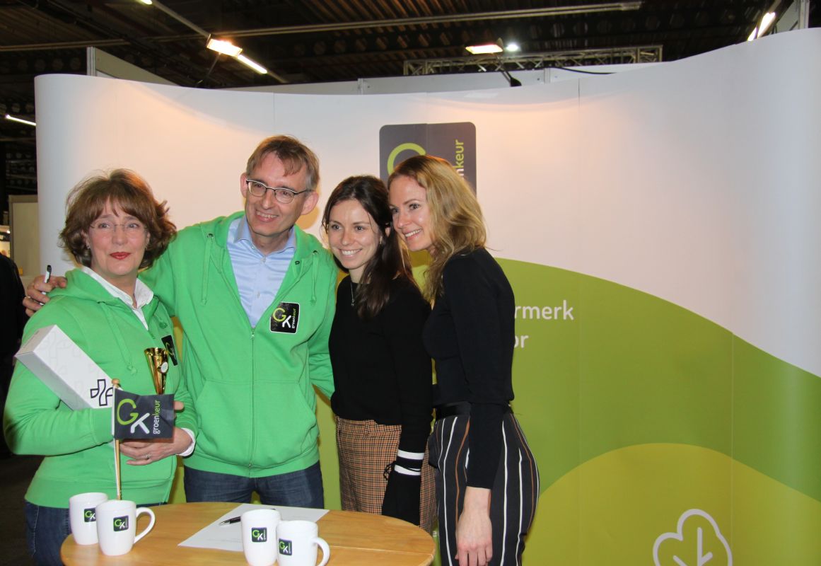 Blijdschap op de beursstand van Groenkeur waar een partnerschap met beursorganisator Expoproof wordt ondertekent