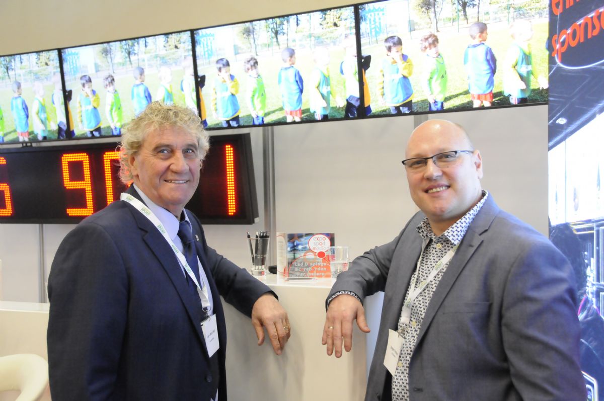 Toine Rorije en Jordan Heuver staan flink in de spotlight op de bijna lichtgevende stand van Sportverlichting.com