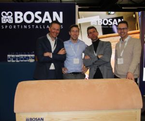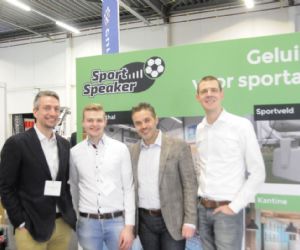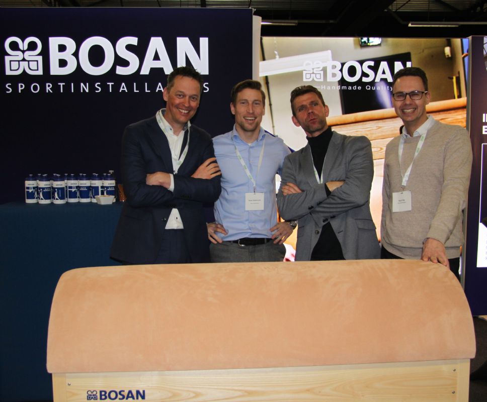 Walter van den Brink, Mark Snijder, Kenny Stedehouder en Ruud Plas van de firma Bosan namen de gymzaal mee naar de beurs.