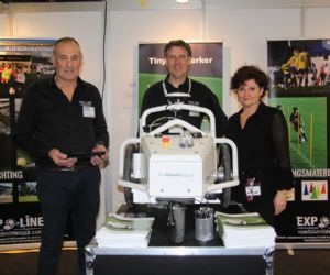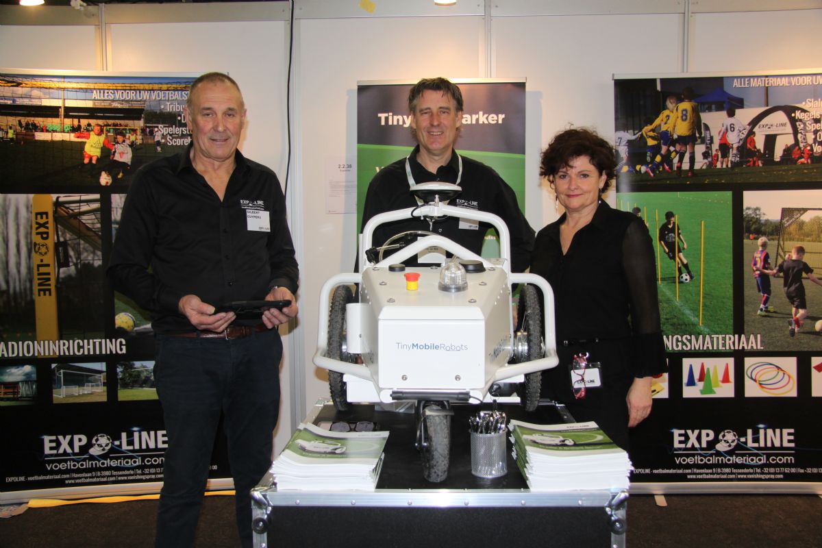 In de stand van Expo-line stond de Tinylinemarking belijningsrobot centraal. Welke volgens Tom, Gilbert en Nelly de allerstrakste lijnen trekt, het is niet voor niets de meestgebruikte en verkochte belijningsrobot.' i.JPG