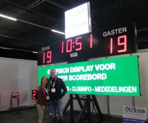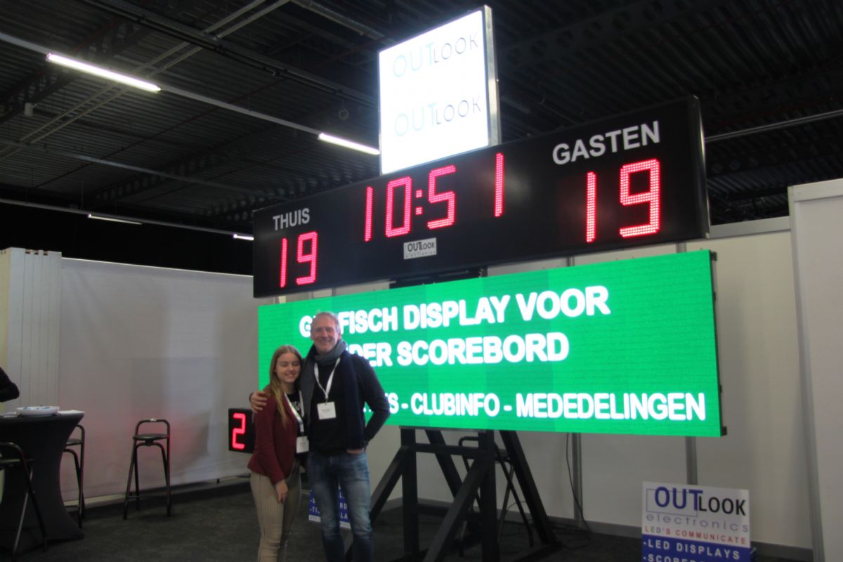 Lieke en Anton Geybels van familiebedrijf OutlookElectronics namen hun grootste borden mee naar de beurs.