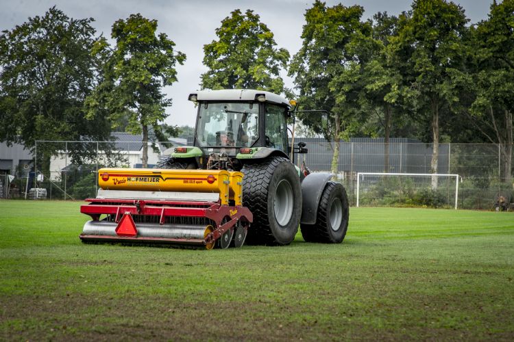 Hofmeijer Civiel- en Cultuurtechniek startte zijn werkzaamheden in 2011 en krijgt successievelijk steeds meer innovatieve Nederlandse machines in de loods, waarmee het bedrijf vooroploopt in de markt. Ze staan er naast de oude, vertrouwde wiedeg en Fieldtopmaker. Met beide worden successen geboekt. 'Wij wisselen overigens graag van beluchtingsmethode, zoals met de Vertidrain en de schudbeluchter', vertelt Meijerhof. 'We kunnen zowel op het niveau van 30 cm als 15 cm vertidrainen, en ook het recycledressen in combinatie met de Fieldtopmaker behoort tot onze mogelijkheden. Deze laatste machine laat zich zo instellen dat je bij het afscheren van de toplaag een laagje grond overhoudt om de oneffenheden mee te slechten.' De nieuwste aanwinst van Hofmeijer Civiel- en Cultuurtechniek is overigens een nieuwe schudfrees met een werkbreedte van 2,5 meter. Daarmee kan het bedrijf per dag twee tot drie sportvelden onder handen nemen. 'Een apparaat als dit, de Imants Shockwave, mag niet ontbreken', vindt Meijerhof. 'Wij zijn specialisten en zo ziet de markt ons ook.' Dat ervaart hij als waardevol.