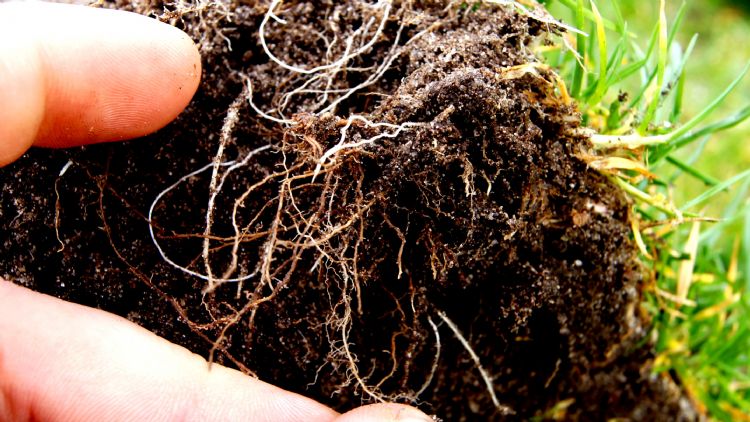 | Een gezonde grasmat met een sterk vertakt netwerk van haarwortels na behandeling met Natugram |