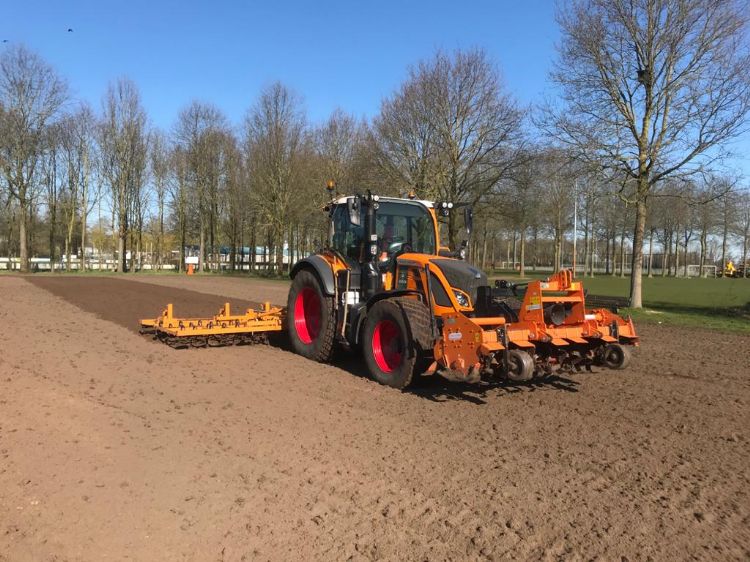 J van Esch is verantwoordelijk voor het onderhoud van ongeveer 200 sportvelden. Ze houden zich daarbij bezig met verticuteren, recycledressen, slepen, doorzaaien en bezanden. Daarnaast zijn er twee velden in de gemeente Landerd die compleet gerenoveerd worden, inclusief nieuwe drainage en beregening. 'Het onverwachte voordeel voor ons is dat we nu complex voor complex kunnen werken, en dat de velden langer de tijd hebben om te herstellen', vertelt Bart Mies, projectleider Groen & Sport. 'Het feit dat momenteel de accommodaties niet gebruikt worden en veelal afgesloten zijn, vergroot de veiligheid voor onze medewerkers.'