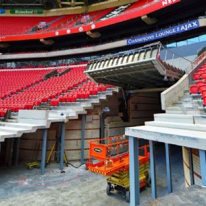 Het werk aan de nieuwe hoekstands in de Johan Cruijff ArenA is in een vergevorderd stadium. Het stadion krijgt circa 880 extra zitplaatsen, waardoor de capaciteit op ruim 55.000 komt.