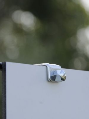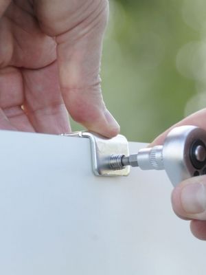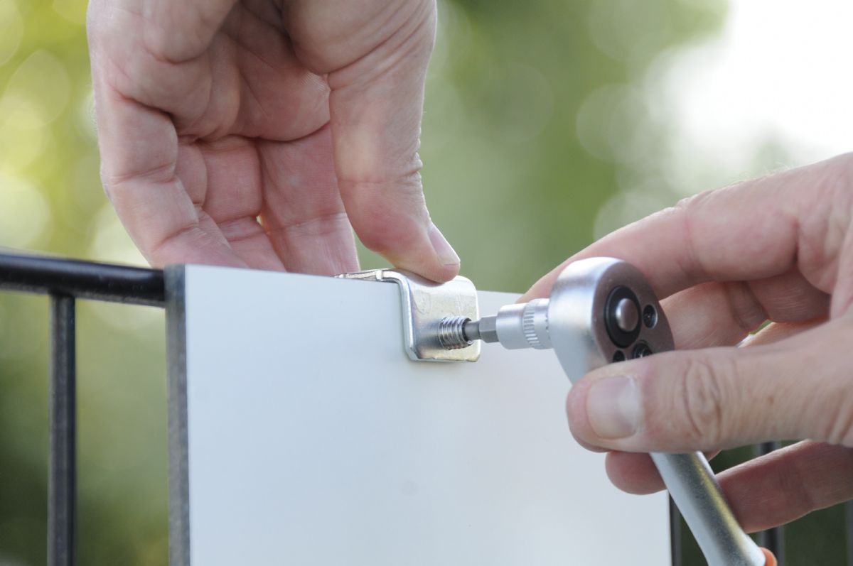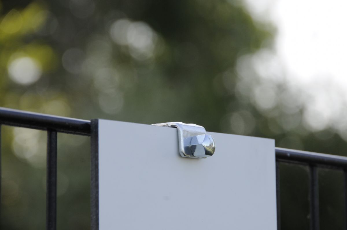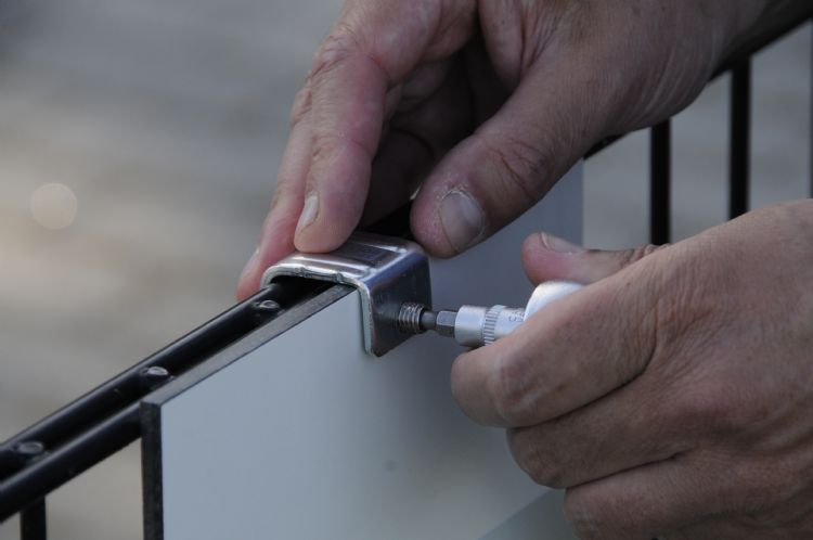 Als 'simpel' gelijkstaat aan 'geniaal', gooit de Sponsorbolt hoge ogen. De klem bestaat uit een gegalvaniseerd en gezet ijzeren hoekje dat amper vijf centimeter groot is en waar een rvs inbusboutje in getapt is. De truc is dat je de klem in een dubbelstaafmat-hekwerk kunt plaatsen en vervolgens de handen vrij hebt om het sponsorbord aan de bovenkant te bevestigen. Volgens Veeneman is het daardoor mogelijk om in je eentje een sponsorbord te plaatsen. Veeneman en uw redacteur nemen de proef op de som; voor het filmpje tellen we hoeveel tijd je nodig hebt om een klein bordje op het hek te plaatsen. Dat lukt probleemloos binnen een minuut.