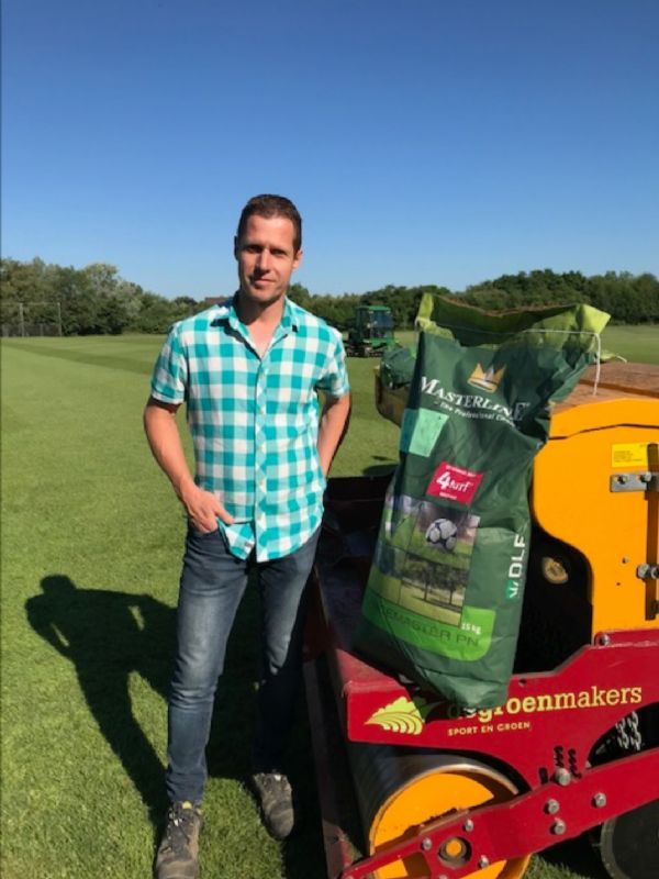 Fieldmanager of the Year 2020 Jaap Verhagen past al sinds september 2013 4turf-mengsels toe op zijn achttien sportvelden, zowel natuurgras als hybride velden. Hiervoor gebruikt hij de Vredo DDS-doorzaaimachine, zodat de mengsels op de juiste diepte en met dubbele hoeveelheid kunnen worden ingebracht. '4turf-grassen kiemen snel en concurreren met straatgras. Je krijgt er sterke graszoden van.' Verhagen: 'Ik pas selectief bepaalde mengsels op bepaalde velden toe. Bij FC Zutphen zaai ik sinds 2019 het mengsel Beemdmaster. De eigenschappen van de 40 procent tetraploïde Engels raaigras, 30 procent diploïde Engelse raaigras en 30 procent veldbeemd zorgen voor goede kieming op deze licht leemachtige, zandachtige grond. Dit mengsel kiemt een stuk sneller dan de andere veldbeemdmengsels. Sinds we doorzaaien met de Vredo DDS-doorzaaimachine, komt het gras zelfs extra vroeg op! Door het veldbeemd ondieper te zaaien dan het Engels raaigras, zorg je ervoor dat alle grassoorten in het mengsel er gelijktijdig uit komen. Bij voetbalclub De Hoven liggen de velden op zware klei. Daar begonnen we met Beemdmaster. Het graszaadmengsel met 4turf doet het ook daar goed, maar ik ga binnenkort nog in overleg met DLF over een ander type veldbeemd. Het is een koude grond. Wellicht stap ik over op BalanceMaster, dat gebaseerd is op een SV7 en een combinatie is van sterk diploïde Engels raaigras met extra sterk tetraploïde Engels raaigras. Het voordeel van BalanceMaster is dat het aandeel veldbeemd is gecoat met ProNitro. De graszaden in BeemdMaster zijn niet gecoat; daardoor heeft BeemdMaster wat meer moeite met opkomen op de koude grond.'