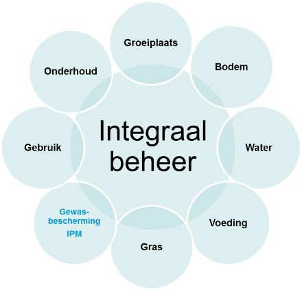 1. Begin met een planHet begint met een plan. In dit geval: het integraal beheerplan. Het IPM wordt daarin opgenomen. Daarmee wordt vastgelegd hoe ziekten en plagen worden voorkomen en als dat onverhoopt niet lukt, hoe ze worden bestreden. Behalve het IPM krijgen verschillende thema's een plaats in het plan: gras, voeding, water, bodem, groeiplaats, onderhoud en gebruik.2. Hoe staat het gras erbij?Het beheerplan is klaar. Tijd om het veld onder de loep te nemen, om een nulmeting uit te voeren. De toestand van het veld op en onder de grond wordt in kaart gebracht en ook de situaties rond het veld worden beoordeeld. Niets blijft voor het kritische oog van de controleur verborgen: er is aandacht voor de sporttechnische en de cultuurtechnische kwaliteit, de chemische samenstelling van de bodem en de hoeveelheid licht, lucht en vocht die beschikbaar is voor het veld.Bij de nulmeting hoort ook een inventarisatie van eventuele preventieve maatregelen. Moeten de bomen langs het veld misschien worden gesnoeid om onwenselijke schaduw te voorkomen? Of is het nodig ze te kappen? Zo ja, waar is ruimte voor compensatie? Wat de specifieke maatregelen ook zijn, ze zorgen voor een gemakkelijker beheer in de toekomst. 3. Een beetje onkruid mag bestHet is verleidelijk om in te zetten op een veld met vrijwel geen onkruid. Dat leidt vast en zeker tot blije sporters. In werkelijkheid valt er nogal wat af te dingen op die keuze.Een veld met minder dan 1 procent onkruid is immers duurder in onderhoud dan een veld met meer onkruid. In de branche wordt nogal eens gewerkt met een verdeling in gradaties. Dat helpt bij het maken van een keuze als het gaat om wat acceptabel is, een keuze die mede wordt bepaald door het budget. Maar dat niet alleen; ook de intensiteit waarmee een veld wordt bespeeld maakt verschil. Verder zijn de gewenste sporttechnische eigenschappen van belang, evenals het risico op plagen (bijvoorbeeld: 'Als we eenmaal 5 procent toestaan, wordt het op deze plek zo 10 procent', weet de meneer die al jarenlang het gras verzorgt).