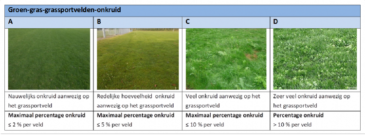 Bij een keuze voor wat meer onkruid is het zaak de gebruikers goed te informeren, hen te vertellen over de consequenties van de keuze en de redenen ervoor, bijvoorbeeld: 'Zo houden we genoeg geld over voor ons eeuwfeest, volgend jaar.' De vooraf vastgestelde drempelwaarden moeten vanzelfsprekend worden gerespecteerd; 5 procent is 5 procent. Wel is het de vraag of ingrijpen pas wenselijk is als die grens is bereikt of al eerder. Overigens zijn dit dilemma's die voor veel verenigingen en gemeenten voorlopig nog niet aan de orde zijn. Vlak voordat de Green Deal Sportvelden van kracht werd, hebben nogal wat beheerders en eigenaren hun velden nog snel met chemicaliën onder handen genomen. Dat is de komende jaren nog merkbaar. Er komt echter een tijd dat de middelen hun effect verliezen en onkruid zijn kans grijpt. Als het even kan, weten de gebruikers vóór die tijd al van mogelijke hogere drempelwaarden. 4. Monitoren: 'Ik ken het veld als mijn broekzak'Beheren is iets anders dan ingrijpen als het nodig is. Beheren is ook en vooral het veld monitoren volgens een vooraf vastgestelde methode. Daarbij hoort dat vooraf wordt vastgelegd wanneer en hoe er wordt ingegrepen en wie voor de monitoring verantwoordelijk is.Monitoren is leuk, want na verloop van tijd leert de inspecteur - of hoe de monitorverantwoordelijke ook wordt genoemd - de velden kennen als de eigen broekzak. Elk jaar groeit de hoeveelheid data en worden de eigenaardigheden van elk veld meer inzichtelijk. Wat daarbij helpt: niet elke paar jaar een nieuw onderhoudsbedrijf inhuren. 5. Doen wat is opgeschreven, opschrijven wat is gedaanEen goed plan zorgt ervoor dat beheerders, aannemers of andere betrokkenen doen wat eerder is opgeschreven. Net zo zinvol is het om vervolgens op te schrijven wat er is gedaan en hoe het veld erbij ligt. Zo'n database is een schatkist vol informatie en die informatie is weer de basis voor conclusies, aanbevelingen en acties.Een zogeheten registratiedatabase maakt het mogelijk de gegevens van verschillende seizoenen en jaren met elkaar te vergelijken. Ook kan veld A worden vergeleken met veld B. Voeg er informatie over weersomstandigheden aan toe en de kennisbank wordt nóg waardevoller. Het leidt tot efficiënter en effectiever onderhoud. Dat is winst: letterlijk in de vorm van een financiële besparing, figuurlijk in de vorm van spelplezier. Een detail, maar toch: de functionaris die de database vult, hoeft niet per definitie de persoon te zijn die conclusies en maatregelen vaststelt op basis van de opgeleverde gegevens. 6. Onderhoud zelf doen of uitbesteden?Het onderhoudsplan gaat over bemesting, beregening, onkruidbestrijding of -beheer, noodzakelijk maatwerk (onontkoombaar bij natuurgras - kleigrond vraagt bijvoorbeeld om een andere aanpak dan zandgrond), wanneer wat gebeurt en wie het onderhoud verzorgt. Waarmee de vraag van belang is: zelf doen of uitbesteden?Een slecht onderhouden veld leidt tot gedoe. Het verklaart waarom gemeenten soms besluiten het zelf te doen: 'Dan weten we zeker dat het goed gebeurt.' Maar het is natuurlijk goed mogelijk om het uit te besteden en tegelijkertijd de regie in eigen hand te houden. In dat geval bepaalt de gemeente zelf wanneer er wat gebeurt. De gemeente is dan vast en zeker de opsteller van het onderhoudsplan. Mogelijkheid drie: spreek af welke kwaliteitseisen aan een veld worden gesteld en maak een extern bedrijf vervolgens helemaal verantwoordelijk voor de prestaties die daarvoor nodig zijn. Dat onderhoudsplan mag de aannemer in dat geval ook zelf maken. 7. Een onderhoudscontract is geen keurslijfEen traditioneel frequentiebestek is zo wendbaar als een olietanker. Met een flexibel onderhoudscontract kan sneller en beter worden ingespeeld op al dan niet verwachte ontwikkelingen en de specifieke situatie van een veld. Dat is juist bij chemievrij beheer van belang. Het feit dat drie jaar na de invoering van de Green Deal op veel velden nog altijd amper onkruid te zien is, is daarvan een illustratie. Die zekerheid is er zonder chemicaliën niet.Wie voor maximale controle gaat, kiest voor een raamovereenkomst op basis van de zogeheten RAW-besteksystematiek. Bij het verleggen van de verantwoordelijkheid naar een aannemer voldoet een geïntegreerd contract beter. Daarbij worden de inkoop- en leveringsvoorwaarden van het UAV-gc gecombineerd met die van het rentmeesterschap, van het ontzorgen van de opdrachtgever wat betreft het behoud en beheer van het veld. Rentmeesterschap op basis van UAV-gc biedt tevens mogelijkheden tot maatwerk en flexibiliteit. Het is raadzaam om een onafhankelijk adviseur te raadplegen die thuis is in de wereld van sportgrasvelden. Een standaardcontract ('Op de stippellijn de gemeentenaam invullen') voldoet immers niet. 8. En als het nu écht niet zonder chemische middelen kan?In een stappenplan voor chemievrij beheer hoort deze vraag eigenlijk niet thuis. Wie voor chemievrij kiest, wil niet blozend moeten erkennen dat de weegbree toch echt alleen kon worden bestreden met glyfosaat. Maar die heel zeldzame keren dat het dan toch met chemische hulpmiddelen moet, is het raadzaam enkele regels in acht te nemen.Vanzelfsprekend is dat gebruik altijd zeer selectief. Dat betekent niet alleen dat het op weinig momenten gebeurt, maar ook alleen op die plekken of - liever nog - plekjes waar het niet anders kan. De keuze voor één middel is niet zoiets als een herhaalrecept. Onkruid is slim en wordt nogal eens resistent. Dat geldt vooral bij het machinaal bestrijden met chemicaliën. De oplossing is om te wisselen in het gebruik van middelen. 9. Evalueer en leerWie doet wat hij altijd deed, krijgt wat hij altijd kreeg. Evalueer het effect van de genomen maatregelen dus regelmatig en gebruik de resultaten voor stap 10. Mogelijke vragen:Voldoen de gekozen schadedrempels? Zorgt het tolereren van iets meer onkruid nog steeds voor goed bespeelbare velden? Zo ja, kan de drempel misschien een tikkeltje worden verhoogd, met als gevolg een extra besparing? Zij