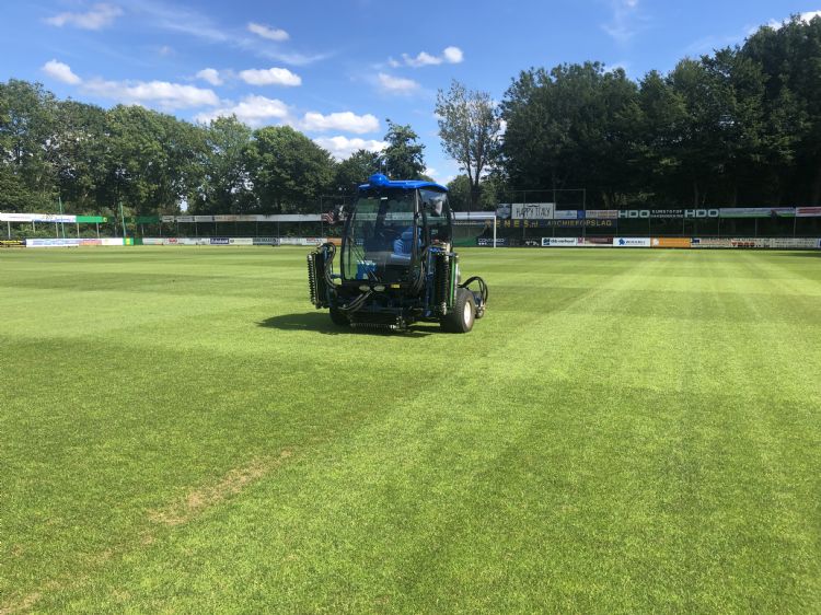 Maaien met groomers op een sportveld, dat kan toch helemaal niet? Die reactie hoorden Dick en Marinus Groenenboom geregeld bij hun zoektocht naar een geschikte machine. Toch is het ze gelukt. In samenwerking met dealer Kraakman zet K. Groenenboom cultuurtechnische werken sinds deze zomer een John Deere-fairwaymaaier in voor het maaien van natuurgrasvelden.