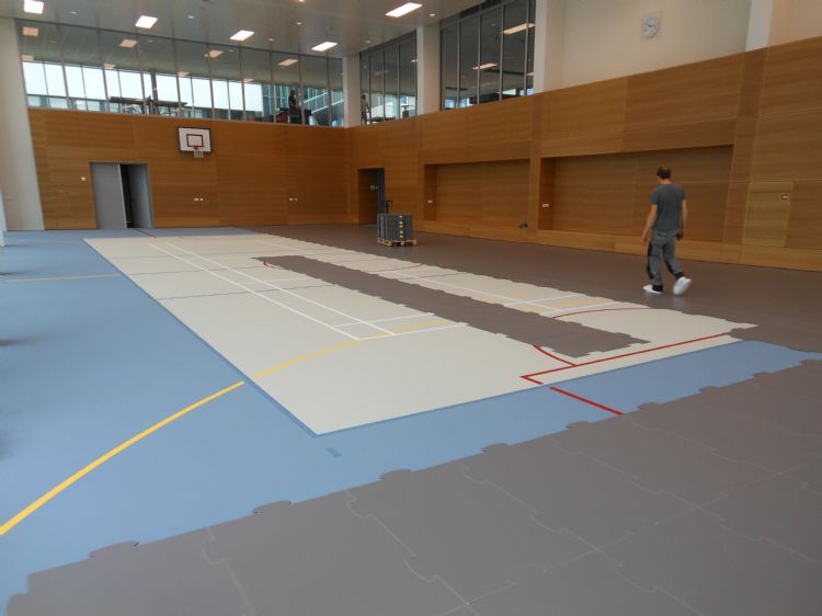 Binnen een half uur kan met dit systeem een gymzaal omgevormd worden tot leslokaal, dankzij een legpuzzelsysteem met polypropyleen sandwichpanelen van 120 x 80 cm. Elke plaat weegt 1,5 kg en het systeem werkt eenvoudig, zodat het ook door leerlingen gelegd kan worden. De platen klikken in elkaar en zijn direct beloopbaar. Ook zijn ze berijdbaar met trollies of steekwagens om tafels en stoelen op hun plek te zetten.