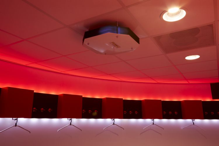 Philips UV-C desinfecterende upper air-armaturen zijn te gebruiken terwijl er mensen in de ruimte aanwezig zijn. Ze desinfecteren continu de lucht die door middel van natuurlijke convectie naar de bovenste luchtlagen stroomt. De gedesinfecteerde lucht stroomt op eenzelfde wijze terug naar de lagere luchtlagen in de kleedkamer en vermengt zich daar weer met de lucht. Philips UV-C desinfecterende upper air-armaturen zijn uitgerust met afscherming en optische bescherming om blootstelling aan de UV-C-lichtbron te voorkomen, zodat spelers zich onbezorgd kunnen klaarstomen voor de wedstrijd.