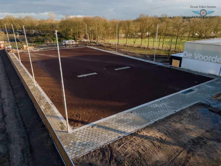 Op het nieuwe sportpark verlopen de werkzaamheden voorspoedig. Volgens uitvoerder Ten Cate is al het grondwerk gedaan en zijn de opbouw van het veld en de bestrating gereed. 'Het is nu even wachten op mooi weer, zodat we het kunstgras kunnen leggen en het laatste stukje bestrating kunnen doen. Daar wachten we een goed moment voor af.' De club is zeer tevreden over de samenwerking, vertelt Druijff. 'We hebben om de twee weken bouwvergadering en alles loopt op schema. Als de aannemer ergens tegenaan loopt, hebben we overleg en wordt het flexibel opgelost.'