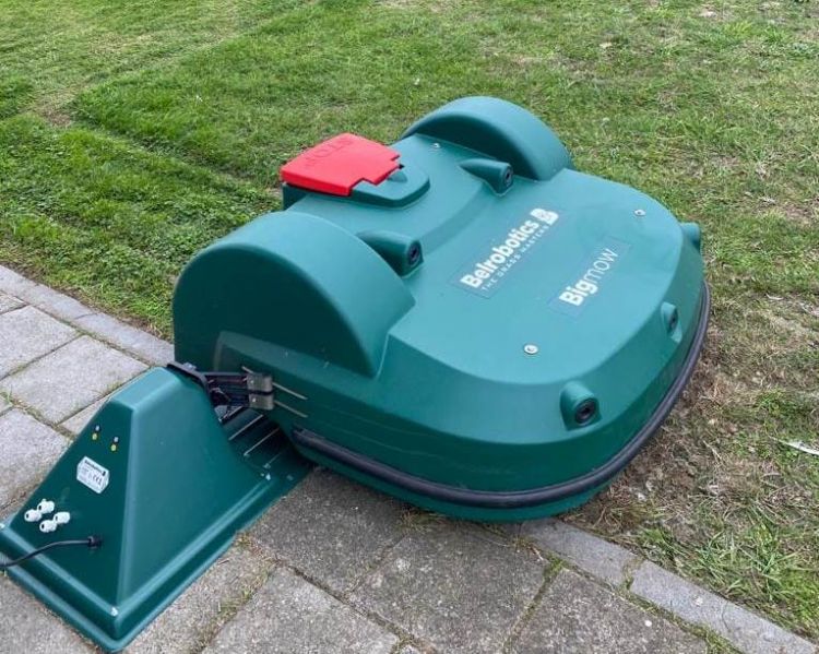 | De Belrobotics maaien kabelgeleid. Gps wijst de robots het laadstation. |
