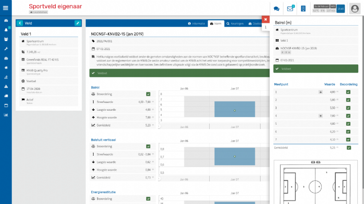 Uiteindelijk heeft Spot On als doel om data te verzamelen en op basis daarvan betere keuzes te maken. Van der Holst: 'Je ziet in de analyses welke systemen het goed doen in combinatie met welk onderhoud. Bij kunstgras kijk je hoeveel infill er is bijgevuld, welke materialen en welke machines er gebruikt zijn. Zo krijg je de kosten van een veld precies in beeld. Dat is ook een voordeel als er begrotingen gemaakt moeten worden in de politiek. Je hebt betere informatie op basis waarvan keuzes gemaakt kunnen worden voor de aanleg van een volgend veld. Dat is echt de meerwaarde van dit systeem.' Hamelink vult aan: 'Het systeem helpt je om de juiste keuzes te maken bij investeringen. Dat doe je dan echt op basis van feiten.'