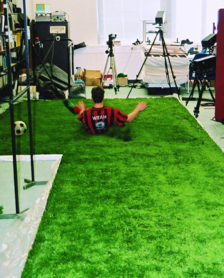 | | Het onderzoek wordt meestal op kleine stukjes kunstgras gedaan. |