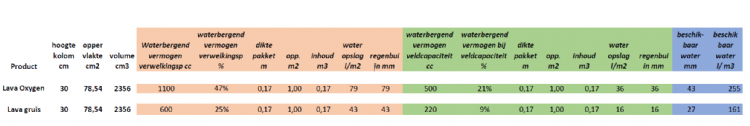 | | Tabel 1. Waterbergend vermogen Lava Oxygen vergeleken met lavagruis |