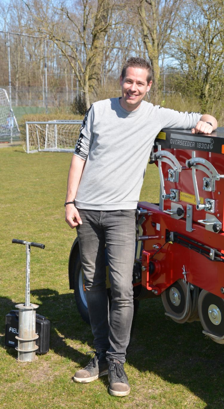 'In Stadskanaal beheren we de sportvelden al ruim tien jaar chemievrij en dat levert weinig problemen op. In 2009 zijn we gestopt met vergif spuiten, toen we overstapten op organische meststoffen. Dat hoort niet bij elkaar. Tegelijk zijn we begonnen met het vaker beluchten van de velden voor een gezonde bodem en goede wortelgroei. Sinds een jaar of vijf zaaien we de velden bovendien zo vroeg mogelijk na de winter door, al tijdens de competitie, als de tempartuursom hoog genoeg is. Met de gangbare SV7- en SV8-mengsels en soms RPR krijgen we de grasmat weer snel gesloten, waardoor we weinig last hebben van onkruiden. De velden zullen nooit 100 procent onkruidvrij worden. Hier en daar groeit wel een witte klaver of een weegbree, maar het is goed beheersbaar en niemand stoort zich eraan. Wel lijkt het of we sinds de omschakeling wat meer last hebben van engerlingen en emelten. Ad van Bruggen van Biocontrole helpt ons met de monitoring en de bestrijding met nematoden als het nodig is. Alle onderhoud in Stadskanaal wordt uitgevoerd door een vaste aannemer, maar ik bepaal zelf per veld wat er moet gebeuren. Tegen het eind van de competitie ga ik alle velden langs om een lijstje te maken van noodzakelijke werkzaamheden. Voorheen stak ik hierbij regelmatig de schop in de grond. Daar heb ik steeds minder tijd voor, maar het is ook minder nodig. We hebben weinig problemen. Wat erg helpt, zijn de goede contacten met de verenigingen. In overleg lukt het om de meeste trainingen in het voorjaar te verplaatsen naar de wedstrijdvelden, waardoor we de trainingsvelden al in april kunnen aanpakken. Je profiteert dan van een langere rustperiode en de gunstige periode in het groeiseizoen, waardoor de grasmat sterker de zomer in gaat en onkruiden minder kans krijgen.'