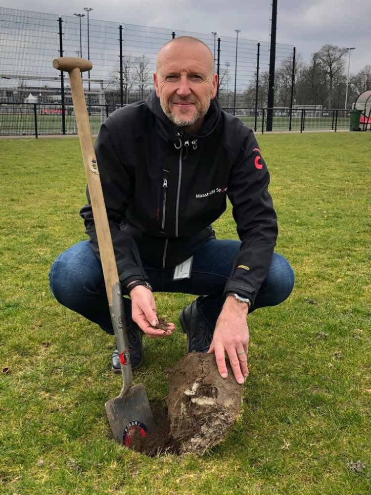 'Maastricht heeft het onderhoud van de 30 natuurgrasvelden grotendeels uitbesteed aan een aannemer. De gemeente heeft zelf maar een beperkt machinepark. Er wordt gewerkt met een meerjarenonderhoudsplan, maar er is voldoende ruimte voor maatwerk. Zelf zitten we erbovenop en de aannemer handelt snel als het nodig is. We monitoren de velden regelmatig en steken daarbij ook de schop in de grond om te kijken hoe het gaat met de beworteling en de toplaag. In vergelijking met eerder besteden we veel meer aandacht aan het beluchten. Vanwege het hoge leemgehalte in onze velden beluchten we vaker met de vertidrain en de schudfrees en snijden we de grasmat met de Topair. Ook verticuteren we gemiddeld twee keer per jaar en wiedeggen we de velden drie à vier keer per jaar, of vaker als het nodig is. Op alle velden is automatische beregening aanwezig, maar die wordt niet vaker gebruikt dan strikt noodzakelijk. Dat bepalen we zelf, ook al vinden de clubs vaak dat we erg lang wachten. Wat het groot onderhoud betreft, bepalen we voor elk veld samen met de aannemer wat er moet gebeuren. Als een geplande renovatie nog niet urgent is, passen we het plan aan. De fieldtopmaker gebruiken we selectief. In 2020 hebben we twee velden met veel weegbree en hanenpoot gescalpeerd en daarna opnieuw ingezaaid. Dat heeft goed gewerkt. Al met al liggen de velden er een stuk beter bij dan in het verleden. In 2019 hebben we voor het laatst tegen onkruiden gespoten. Met het huidige onderhoud leveren onkruiden weinig problemen op. Afgelopen jaar hebben we op een veld een proef gedaan met een robotonkruidwieder, maar dat is een te dure oplossing als het onkruid zich vrijwel beperkt tot de uitloopstrook. We proberen de grasmat goed gesloten te houden en zaaien daarom alle velden al vroeg in het jaar door. Het groot onderhoud van de trainingsvelden begint bij ons al medio april. Ook de maaihoogte van 35 mm helpt om onkruid te weren, evenals de bepaling in het bestek dat het gras niet langer mag worden dan 55 à 60 mm. Een enkele keer komt de aannemer wel drie of zelfs vier keer per week maaien. Op het moment zijn we aan het overschakelen van minerale naar meer organische meststoffen. Dat doen we geleidelijk, maar het helpt om de groeipieken verder af te vlakken.'