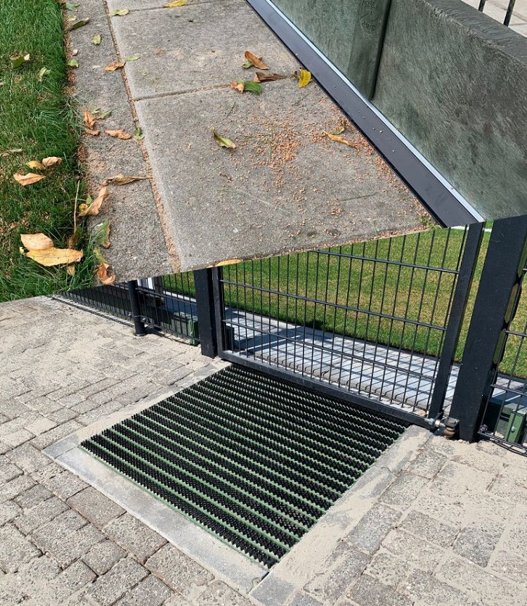 De gerecyclede borstelmat van GreenMatter, bestaande uit een kunstgrasbalk van 43 × 43 mm die verdiept kan worden aangebracht, waardoor er sprake is van een hoge vuilopvangcapaciteit.
