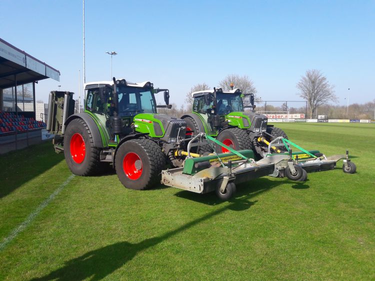 Vanwege het probleem met transport besloot Dirksen toch naar andere opties te kijken. Op een beurs kwam hij cirkelmaaierfabrikant Major tegen, maar overtuigd was hij nog altijd niet. Een bezoek aan de gemeente 's-Hertogenbosch, waar ook een Major draaide, gaf de doorslag. 'We zagen daar een heel mooi maaibeeld; eigenlijk viel me dat ontzettend mee. Dat heeft ons aan het denken gezet. Bij ons liggen de verste velden zo'n 17 kilometer uit elkaar. Met een trekker voor de cirkelmaaier heb je dat snel overbrugd. En een trekker kun je ook gebruiken om te rollen, slepen en versnipperen - allemaal winst. We hebben daarom een Major-maaimachine aangeschaft in combinatie met een Fendt 208.' Deze combinatie draait inmiddels bijna drie jaar in Ede, naar tevredenheid van de clubs, zegt Dirksen. 'We hadden van de verenigingen wel wat commentaar verwacht, want daar lopen dagelijks vrijwilligers vol passie op de velden. Maar ook hen viel het 100 procent mee.'