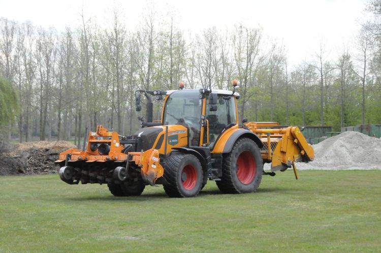 Het treintje van J. van Esch loopt alleen als de techniek op orde is. Daarom heeft het bedrijf zwaar geïnvesteerd in de nieuwste machines. Mies, terwijl hij naar een bovenformaat Fendt kijkt die in de oranje bedrijfskleuren is gespoten: 'Daar staat serieus veel geld, maar mij moet je er niet op laten rijden. Op een oude tractor lukt het nog wel, maar deze tractoren beheers ik niet. Die zitten boordevol met de modernste techniek en ook boordevol comfort. Tijdens het seizoen zit je daar als machinist misschien wel tien uur op. Dan heb je wel een goede stoel en airco nodig.' Het machinepark van J. van Esch is een combinatie van standaardmachines en eigen innovaties. Met dat laatste is een aparte afdeling van het bedrijf onder leiding van Ton van Esch dagelijks bezig; daar worden nieuwe machines ontwikkeld en bestaande machines gerepareerd, maar ook verbeterd. Op dit moment wordt bijvoorbeeld een verticuteermachine ontwikkeld met een werkbreedte van 6 meter. Alles om het werk maar sneller en efficiënter te kunnen uitvoeren. Mies: 'Een van onze machinisten, Jan Verstijnen, die later naar de werkplaats is gegaan, was op een werk en bleek daar alsnog een wiedeg nodig te hebben. Maar dat past natuurlijk niet allemaal op één tractor. Hij heeft toen een hydraulische wiedeg aan de achterkant van een sleepraam gemonteerd, zodat werkzaamheden kunnen worden gecombineerd met een machine.' Mies bedoelt te zeggen dat echte innovaties uit het werk voortkomen, naar aanleiding van de problemen die je daar tegenkomt.