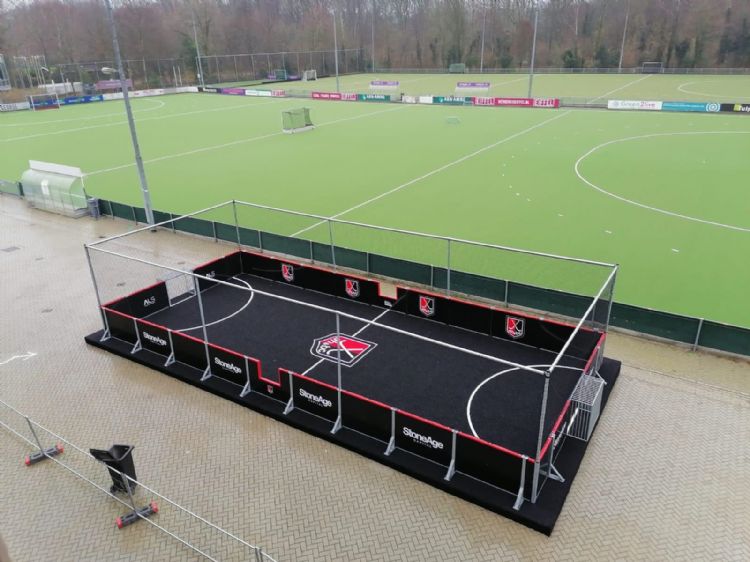 RSI Sports betrokken bij EK HockeyRSI Sports is al ruim een jaar partner van de Europese Hockey Federatie (EHF) en had daarom verschillende technologieën en innovaties geplaatst. Het mobiele veld naast het Wagener stadion trok daarbij veel aandacht. 'Het is een klein oefenveldje dat eenvoudig en overal kan worden geplaatst om clubs en liefhebbers op een leuke manier zo snel aan extra veldcapaciteit te helpen,' zo legt Bart van den Acker van RSI Sports uit. Het veldje met geïntegreerde doeltjes, boarding en netten ter bescherming van de toeschouwers, is op een speciale vlonder geplaatst. 'Het tegelpad dat er lag kent een fors afschot dat we moesten overbruggen om het veldje vlak te houden. Op de vlonder is een waterdicht doek aangebracht waarop we, vervolgens, onze modulaire Base Panel hebben geplaatst. Die leveren het spelcomfort aan het veld en voeren, middels een buffer, water horizontaal af. Dankzij die oplossing kunnen we dit soort veldjes overal plaatsen zonder dat we diep in de grond hoeven te graven.'Volledig modulair Het veldje is volledig demontabel. 'De stukken tapijt zijn met klittenband aan elkaar vastgemaakt. Net als het stalen frame voor het geheel, de boarding, de netten en de doeltjes, kan dus ook de mat eenvoudig worden verwijderd,' zo vervolgt Van den Acker. Het veldje is in verschillende afmetingen leverbaar. 'Dit soort veldjes zijn dus uitermate geschikt voor clubs of evenementenorganisaties die tijdelijk behoefte hebben aan een klein veldje. Uiteraard kunnen we deze veldjes ook in een permanente, en op een duurzame manier bouwen.' Van den Acker ziet echter ook kansen voor sponsors die zich nadrukkelijker willen verbinden aan een club of evenement. 'De verschillende componenten zijn in alle kleuren leverbaar terwijl de boarding bedrukt kan worden met een boodschap. Dit soort veldjes lenen zich dus uitstekend om een statement te maken.' Voor de boarding heeft RSI Sports gebruik gemaakt van gerecycled materiaal. 'RSI Sports heeft duurzaamheid hoog in het vaandel. Al op de tekentafel wordt voor alle componenten nagedacht wat de toekomst zal zijn van het component of materiaal. Dat vergemakkelijkt het opbouwen en afbreken van het veldje en zorgt ervoor dat we een zo klein mogelijke milieu-footprint achterlaten.'