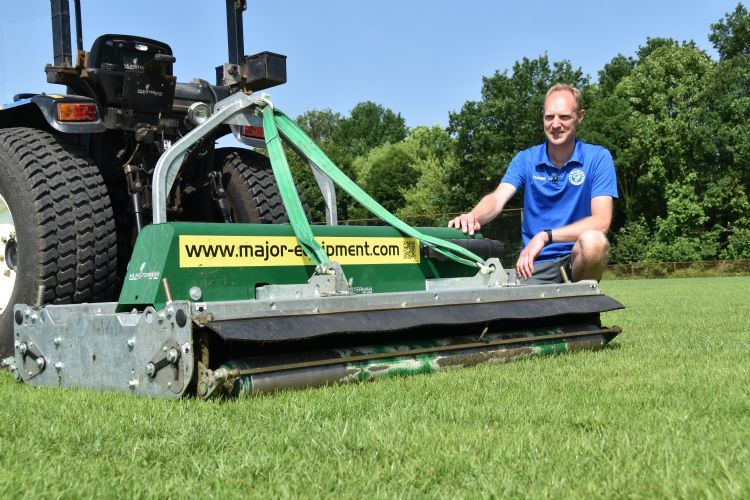 Olthuis kreeg binnen de budgettaire mogelijkheden van een eerstedivisieclub ruimte om met een nieuwe maaier zijn ambities waar te maken: 'Om tot een optimale situatie te komen, heb ik een lijst met werktuigen opgesteld. Ze maaiden hier met een oudere zelfrijdende driedelige kooimaaier. Die heb ik eerst in oude luister hersteld. In de golfwereld had ik al ervaring opgedaan met cirkelmaaiers. Daarom heb ik internet geraadpleegd om cirkelmaaiers voor sportvelden te vinden. Al snel kwam ik al googelend bij de Roller Mowers van het Ierse Major terecht. Ik bekeek vele YouTube-video's van deze aanbouwmaaiers en vond ze veelzeggend. Een van mijn keuzecriteria was dat de maaier moest passen bij het aantal pk's van onze tractoren, een Boomer 35 en een Boomer 50. Vanwege het vermogen van die tractoren viel de keuze op een werkbreedte van 190 cm.'