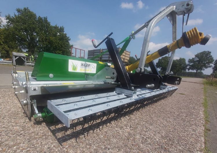 Door de opkomst van robotmaaiers moeten de fabrikanten van 'traditionele' grasmaaiers slim zijn om hun plek te behouden. Major doet dit door een bewerking toe te voegen aan de Swift-rollermaaier. Met een extra eg op het maaidek kan de machine in één werkgang eggen, maaien en rollen.