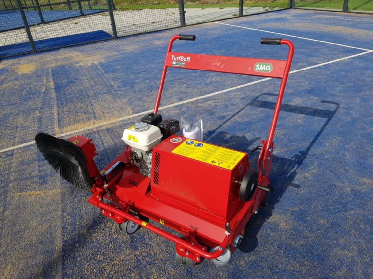Op de vakbeurs zijn diverse unieke kunstgrasreinigers van SMG te vinden. De TurfSoft TS2E is een elektrisch aangedreven reinigingsmachine (ook leverbaar met Honda motor). Dit is een zeer compacte en wendbare machine, geschikt voor kleine veldjes met infill-vrije of ingestrooide oppervlakken. Deze machine is niet meer weg te denken op bijvoorbeeld de tennis- en padelbanen.