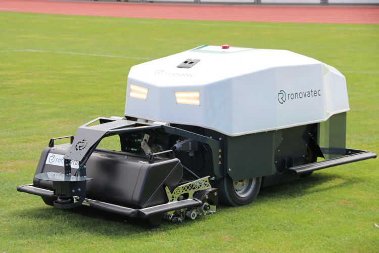 De Rovimo is een ontwikkeling van Ronovatec, een Zwitsers bedrijf dat gevestigd is in Bazel. Dit bedrijf begon een aantal jaar geleden aan de opdracht om een robotkooimaaier te ontwikkelen. Het resultaat is de Rovimo, een robot van zo'n 300 kg die volledig op accu werkt. Arjen Spek van importeur Milati Grass Machines vertelt: 'De Rovimo is een gps-gestuurde werktuigdrager. Op het huidige model zit er een maaikooi aan, maar het hele concept van deze machine draait erom dat er ook andere producten aan gehangen kunnen worden.' Ronovatec koopt die werktuigen extern in. De kooimaaier die nu op de robot zit, is afkomstig van Cub Cadet, in Nederland zeer bekend van de elektrische Infinicut-stadionmaaiers.