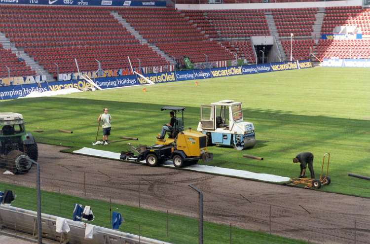 Met de in ons land aanwezige expertise omtrent sportvelden en goed veldmanagement, biedt die buitenlandse interesse de sportveldenindustrie dus nieuwe kansen om op voort te borduren. Dé Nederlandse ervaringsexpert op het gebied van stadionvelden, Erwin Beltman van stadion De Kuip, noemt het een heel mooi initiatief. 'Ik word er toch een beetje zenuwachtig van, want het gaat om heel veel geld', zegt de man die zowel de Fieldmanager of the Year-trofee als meerdere eerste prijzen in de VVCS-veldencompetitie heeft gewonnen. Gertjan Hilarius, die verantwoordelijk is voor het stadionveld van sc Heerenveen, noemt de komst van de norm een goede ontwikkeling. 'Maar of je eraan kunt voldoen, hangt heel erg af van de ligging van het stadion. Elk stadion heeft zijn eigen klimaat', zo merkt hij op. Hilarius is zich er eveneens van bewust dat er nu veel meer op het spel staat. 'De norm zelf maakt het makkelijker om bepaalde activiteiten en investeringen te verantwoorden tegenover het bestuur van de club', zo merkt hij op. 'Dat zal nu eerder inzien hoe belangrijk bepaalde ingrepen zijn, terwijl het voldoen aan de norm ook een zekere erkenning met zich meebrengt.' Hilarius moet veel uit de kast halen om een goed veld te garanderen. 'Het ontwerp van ons stadion maakt het lastig voor ons. De mat krijgt weinig natuurlijk licht en lucht. Bovendien hebben we hier vaker te maken met lagere temperaturen, die hun weerslag op het gras hebben', zo stelt de head groundsman van het Abe Lenstrastadion. 'Om goed voorbereid te zijn op deze laatste ontwikkelingen, hebben we ons veld de afgelopen zomer helemaal laten renoveren, zodat het sinds begin dit seizoen makkelijker voor ons is om ons aan de norm te conformeren.'