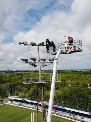 In de eredivisie is Heracles Almelo onlangs overgegaan op ledverlichting van Sportverlichting.com. In de KKD zijn dat Telstar, FC Dordrecht en Top Oss. 'In de KKD zijn we marktleider en we hopen met Heracles Almelo als referentie ook de eredivisie te veroveren. FC Dordrecht was onze eerste afnemer in de KKD. Daar hebben we in 2019 een informatiesessie gehouden, waarbij alle clubs in de regio uitgenodigd waren. Tijdens de presentatie hamerden we op het maken van een stappenplan om duurzaamheidsbeleid te kunnen realiseren. Na de presentatie hebben we een lichtshow gegeven, de wedstrijd gekeken en een hapje en een drankje genuttigd met de diverse bestuurders van de regioclubs. Toen TOP Oss bij FC Dordrecht moest voetballen, waren de mensen van TOP Oss enorm onder de indruk van ons licht; ze vroegen direct aan FC Dordrecht wie de verlichting had geïnstalleerd. Toen FC Dordrecht de commercieel manager van TOP Oss onze kant op stuurde, volgde een afspraak en niet veel later konden we aan de slag in het Frans Heesen-stadion in Oss. Daarna volgde Telstar 1963 NV. Inmiddels tonen ook de overige KKD-clubs interesse voor onze businesscase', legt Bolderman uit.