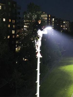 Niet alleen buurtbewoners, maar ook de omringende natuur heeft vaak last van sportveldverlichting. De lichthinderrichtlijnen zijn daarom recent flink aangescherpt. De hele buurt in het licht zetten wordt niet meer geaccepteerd. Daarnaast zijn er ontwikkelingen op het gebied van te gebruiken lichtkleuren. Op de Nationale Sportvakbeurs op 10 november. presenteerde LI sports in zijn stand niet alleen de nieuwe Dark Licht-armaturen, maar ook armaturen met een aangepaste lichtkleur. 'Ledsportveldverlichting kenmerkt zich door een grote hoeveelheid blauw licht. Prima om bij te sporten, maar voor omwonenden, insecten en bijvoorbeeld vleermuizen een doorn in het oog. Er zijn talloze onderzoeken gedaan die uitwijzen dat met name blauw licht schadelijk is voor mens en natuur. Internationaal, vooral in Duitsland, zien wij dat de voorgeschreven lichtkleur warmer wordt. Ik verwacht dat deze trend ook onze kant op komt. Wij kunnen hiervoor maatwerk leveren. Het armatuur op de beurs was een voorbeeld van een zogeheten 'maanlicht-armatuur'. Hier is al het blauwe licht uit gefilterd. Er blijft dan warm, amberkleurig licht van 2200 Kelvin over. We hopen binnenkort een mountainbikeparcours te gaan verlichten met deze armaturen. Daar komt alles samen waar wij als lichtspecialisten blij van worden: alleen licht waar het moet zijn, geen strooilicht naar omwonenden, geen verblinding voor mountainbikers en een lichtkleur waar ook nachtdieren niet van in de war raken. Over duurzaamheid gesproken!'