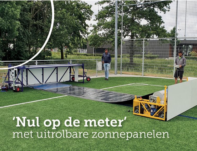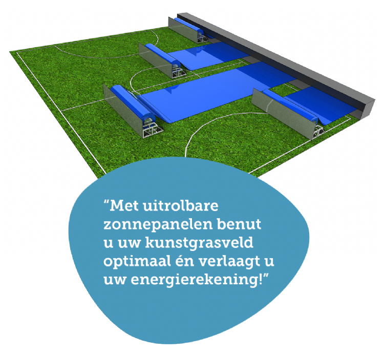 Het oprolmechanisme is inmiddels dusdanig doorontwikkeld, dat het een strook met een lengte tot 70 meter van flexibele zonnepanelen kan uitrollen - voldoende om de breedte van een hockey- of voetbalveld over te steken. En wanneer de club het veld nodig heeft om te bespelen, kunnen de zonnepanelen eenvoudig met een druk op de knop weer worden opgerold. Het oprolmechanisme verdwijnt daarbij veilig in een speciale casing, die tevens de boarding van het veld vormt en daarom ook als reclamebord kan functioneren.