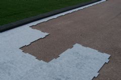Onder een kunstgrasmat die aan vervanging toe is, liggen wel eens Proplay shockpads die eruit zien of deze gisteren geïnstalleerd waren