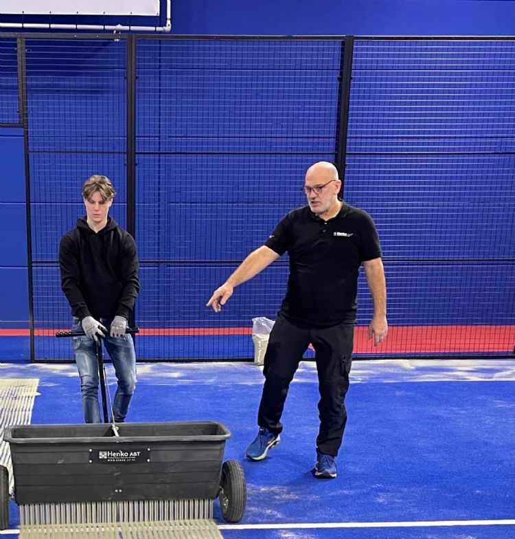 'We hebben niet zozeer echt een nieuw product. Alles wat we hebben, is al innovatief. De gereedschappen die wij ontwikkelen zijn zo specifiek, die google je niet zomaar. Ook haal je ze niet even bij de bouwmarkt. We hebben 80 eigen gereedschappen gemaakt en verbeterd. Daarnaast verandert de markt. Men is meer bezig met het circulair maken van kunstgras. Dat betekent dat de coating anders wordt. Daarbij wordt echter vergeten dat het ook nog verlijmd moet worden. De gerecyclede backing van het kunstgras is zo glad, dat de lijm niet meer hecht. Dat gaat ten koste van de kwaliteit van verlijmingen. Het is lastig om een lijm te maken die hecht aan de nieuwe backing. Zo'n lijm is er nog niet.'