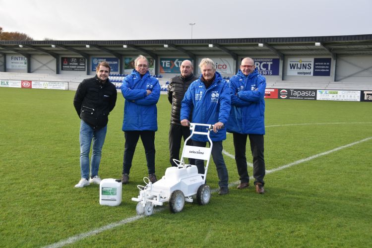 De sfeer bij het interview is zeer gemoedelijk en representatief voor de club, aldus Storms. Tijdens het bezoek meldt ook Dimitri Daeseleire zich, de accountmanager van Selectline voor België. Hij is het aanspreekpunt voor de fieldmanagers, of groundsmen, zoals onze zuiderburen hen noemen. Daeseleire is ook de contactpersoon voor de mannen aan tafel en spreekt hun taal. Gaande het gesprek wordt duidelijk dat het gebruik van Selectline Ready Fit en de relatie met Daeseleire in goede aarde vallen. Daeseleire verduidelijkt dat Selectline als producent zowel de R&D als de productie en de kwaliteitscontrole van de belijningsproducten zelf in huis heeft. De distributie van de producten is echter uitbesteed. In Nederland en België gaat dat via de dealers Scheepers Sport, Amo Sport, Rofraline en Supaturf: 'Ik ondersteun deze dealers, maar in België kunnen gemeenten en clubs ook rechtstreeks bij mij terecht voor persoonlijke service en advies. We zijn sterk aan het groeien op de Europese markt. Daarbij kennen we aan de persoonlijke relatie met onze partners een sleutelpositie toe. Wij zien belijners, groundsmen en terreinknechten als enorm belangrijke mensen binnen clubs; zij zorgen er elke week weer voor dat iedereen kan spelen!'