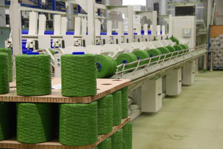 | De avivage-olie wordt bij de productie van kunstgras aangebracht om het tuften te vergemakkelijken (archieffoto vakblad Fieldmanager). |
