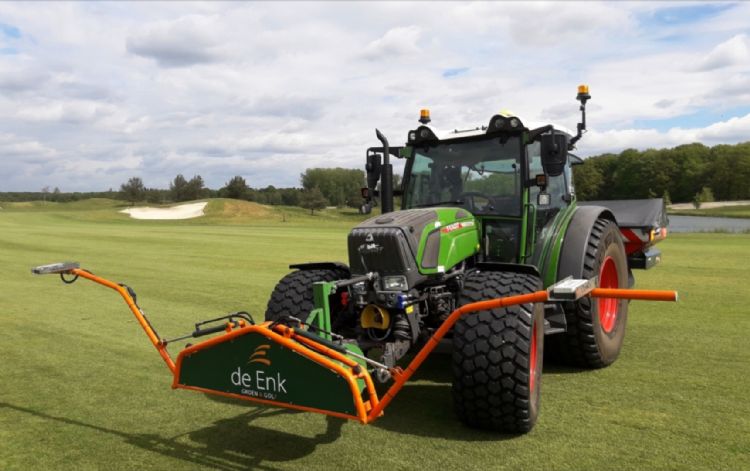 Na intensieve proeven op Prise d'eau durft De Enk ook precisiebemesting toe te passen op meerdere golfbaanfairways en sportvelden. Het leidt tot een egaal beeld, constante kwaliteit en efficiënt gebruik van meststoffen. Zelfs op bosbaan De Rosendaelsche, waar de gps-ontvangst minder is, krijgt men dit voor elkaar. Boogaarts: 'Aan de voorkant van onze machine meten sensoren de gewaslengte en de mate van groenreflectie. Beperkte lengtegroei en weinig groenreflectie betekenen respectievelijk een korte en een dunne grasmat, dus daar is meer bemesting nodig. Aan de achterkant van de machine wordt per vierkante meter de bemesting op de meetresultaten afgestemd. Bij overlap, bunkers of op andere plekken waar geen bemesting nodig is, strooit deze machine niet. Dat is duurzaam, maar ook kostenbesparend, zeker gezien de huidige meststofprijzen. Door deze gps-scans van graslengte en groenreflectie gedurende een bepaalde periode te verzamelen en vervolgens naast elkaar te leggen, herken je plekken die slecht blijven. Daar kun je vervolgens actie ondernemen.'