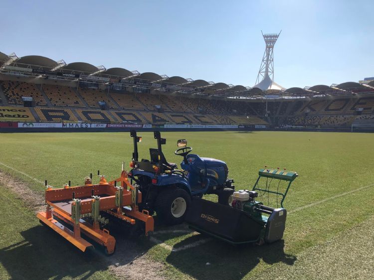 Tot nu toe werd er gemaaid met een driedelige zelfrijdende kooimaaier, die na verloop van tijd sporen in het veld veroorzaakt. Door te gaan maaien met een Dennis G860 wordt dit voorkomen. Een ander groot voordeel van de Dennis G860 is zijn uitwisselbare cassettesysteem. Roda JC heeft gekozen voor een achtbladige maaikooi en een Tungsten Tipped Verticutter-unit. Hiermee kan het veld periodiek verticaal gemaaid worden en kunnen dode grasresten en algenlaag verwijderd worden. Zo blijft het veld 'open' en gaan grassen rechtop staan.