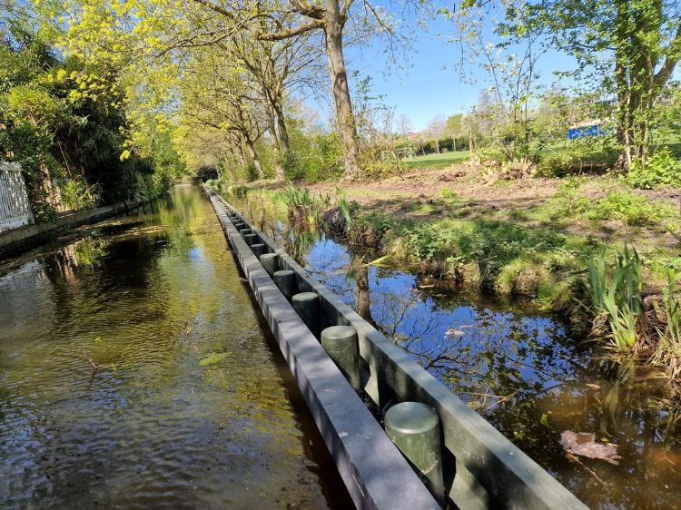 De walbeschoeiing is gemaakt van gerecycled kunstgras. (Foto: Facebook)